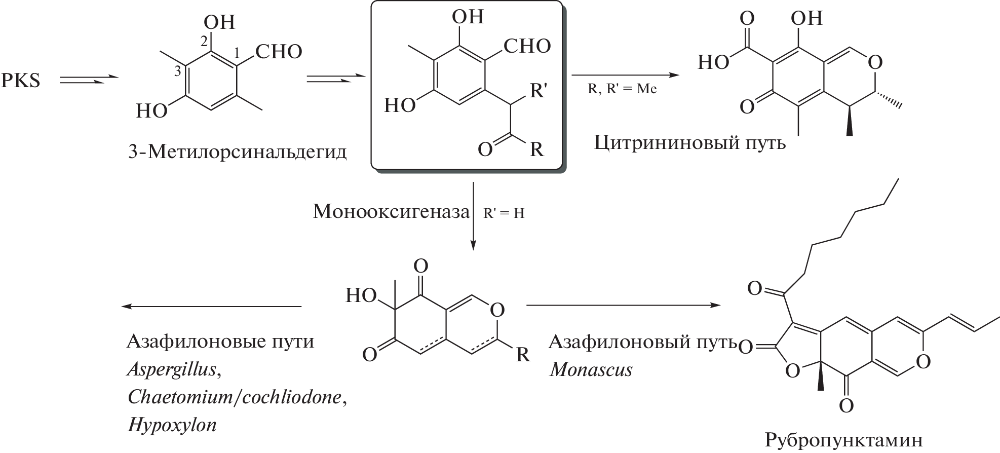 - Pavesi C., Flon V., Mann S., Leleu S., Prado S., Franck X. Biosynthesis of azaphilones: a review // Nat. Prod. Rep. 2021. V. 38. P. 1058‒1071. https://doi.org/10.1039/D0NP00080A