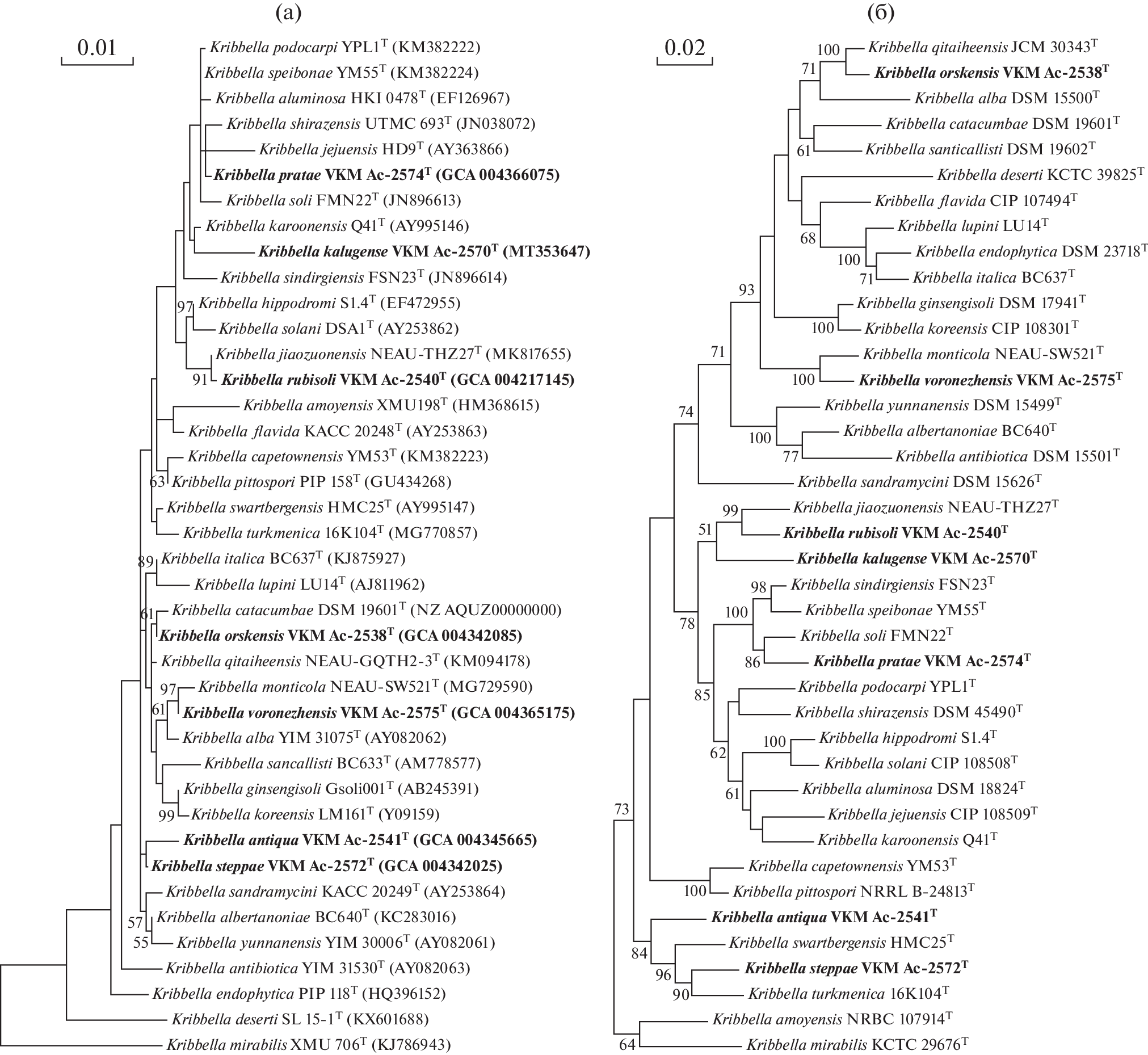 - Curtis S.M., Meyers P.R. Multilocus sequence analysis of the actinobacterial genus Kribbella // Syst. Appl. Microbiol. 2012. V. 35. P. 441–446.
