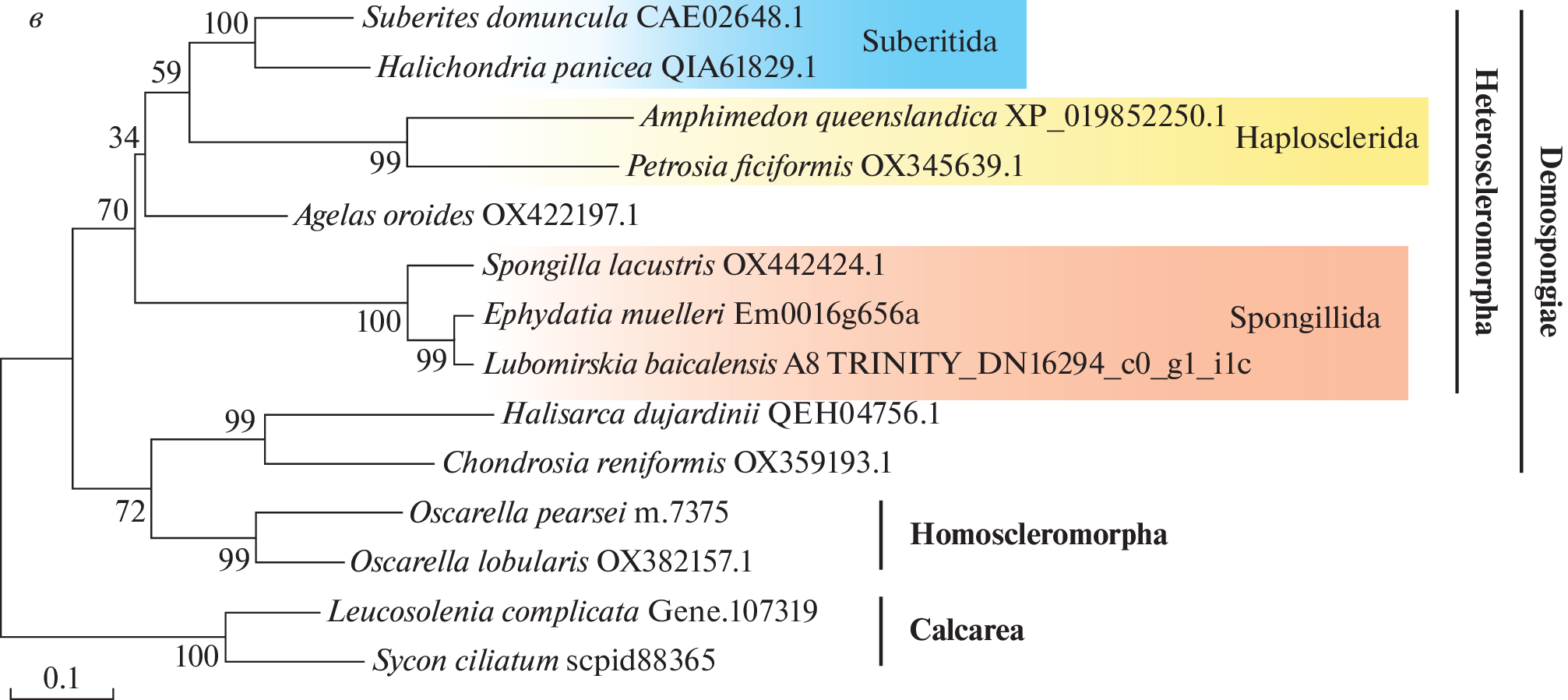 - Simion P., Philippe H., Baurain D., Jager M., Richter D.J., Di Franco A., Roure B., Satoh N., Quéinnec É., Ereskovsky A., Lapébie P., Corre E., Delsuc F., King N., Wörheide G., Manuel M.A. (2017) Large and consistent phylogenomic dataset supports sponges as the sister group to all other animals. Curr. Biol. 27, 958‒967. https://doi.org/10.1016/j.cub.2017.02.031