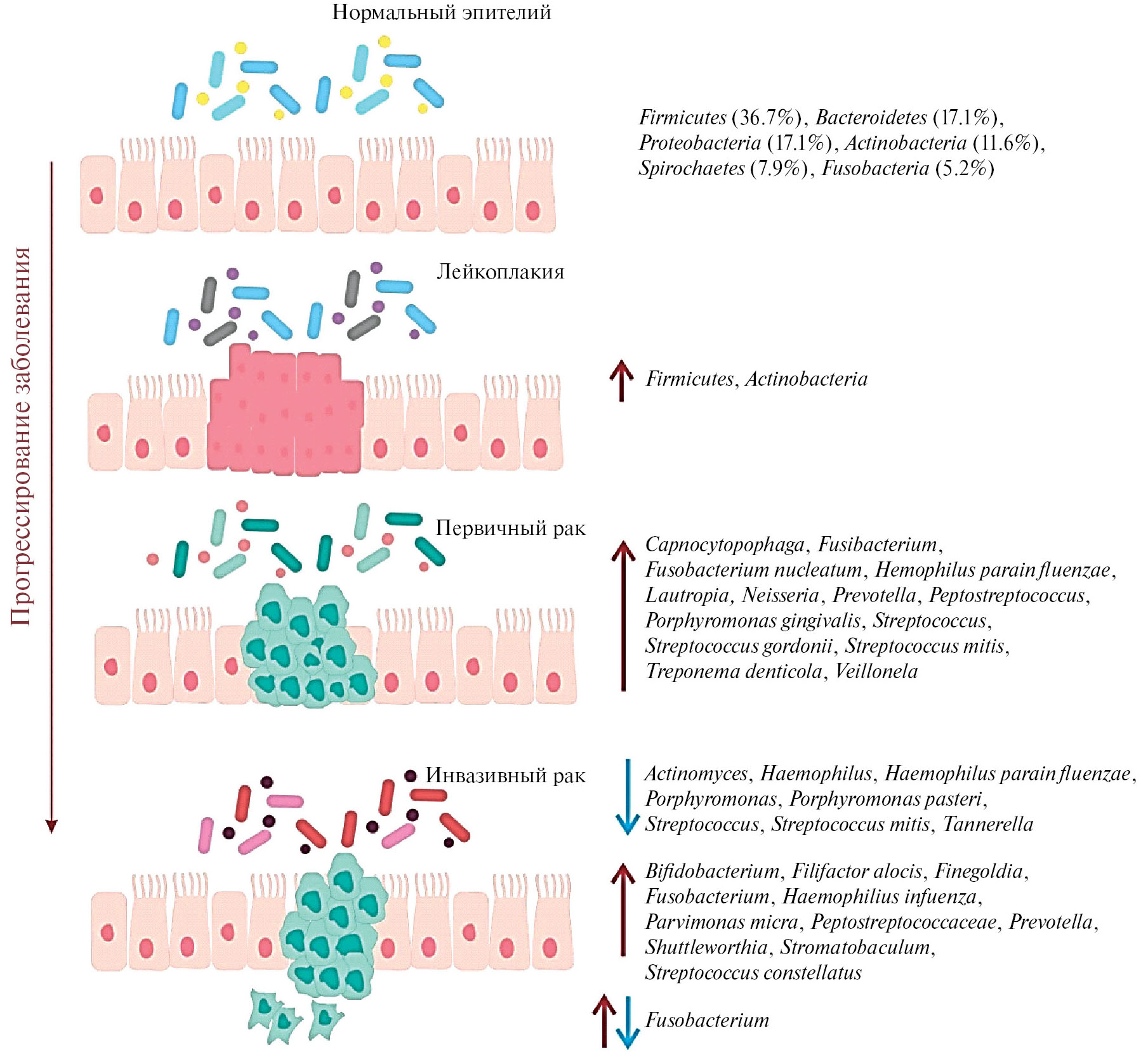 Рис. 2. Изменение состава оральной микробиоты при развитии рака полости рта.