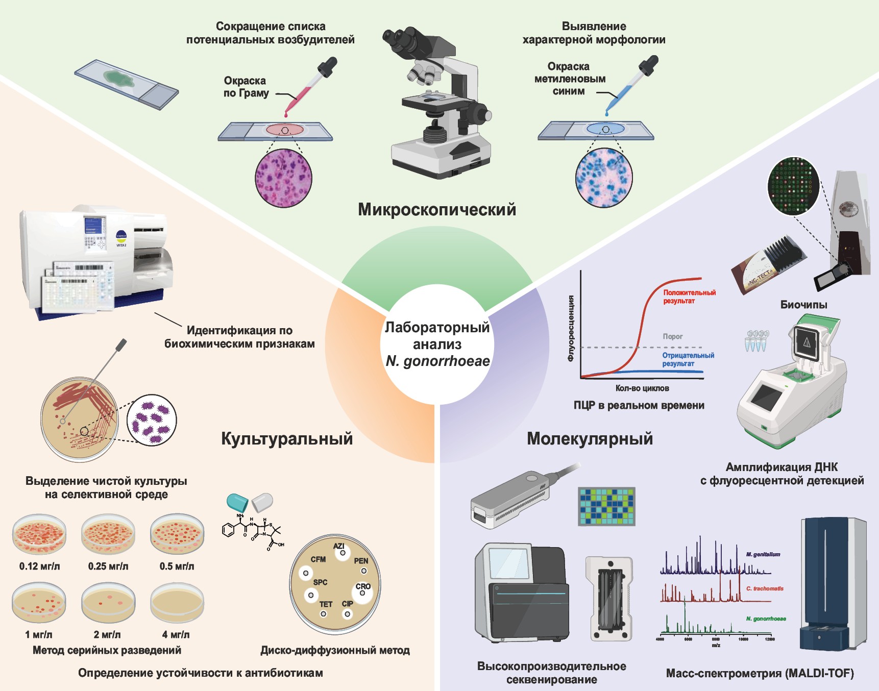 Neisseria gonorrhoeae – грамотрицательная β-протеобактерия, принадлежащая к роду Neisseria. N. gonorrhoeae инфицирует преимущественно эпителий слизистой оболочки урогенитального тракта, а также других органов, таких как прямая кишка, глотка и конъюнктива [1]. В исключительных случаях N. gonorrhoeae способна вызывать диссеминированные гонококковые инфекции (ДГИ) и быть причиной септицемии, артрита, эндокардита, фарингита, тонзиллита, стоматита, паротита, мастита и теносиновита [2]. До 40% случаев заболевания у мужчин [3] и до 50% случаев гонококковой инфекции у женщин [4] могут оставаться бессимптомными, что приводит к невыявленной и невылеченной инфекции, которая, в свою очередь, может повлечь за собой воспалительные заболевания органов малого таза, бесплодие у женщин и эпидидимит у мужчин, а также другие осложнения. В мире ежегодно регистрируют более 80 млн случаев гонореи [5].
