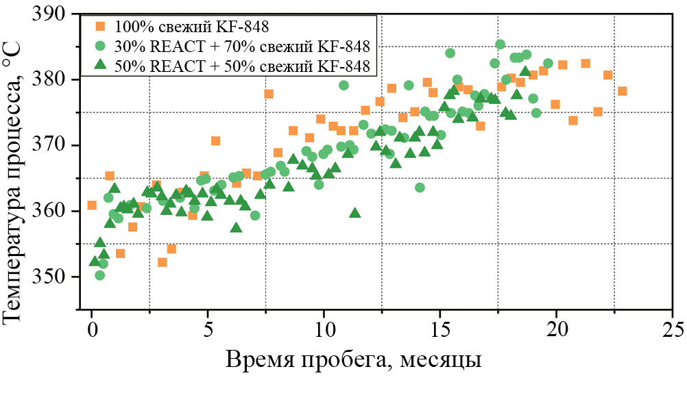 Из вышеперечисленного можно сделать вывод, что активность регенерированного in situ катализатора будет уступать первоначальному уровню. Для относительно малоактивных катализаторов предыдущих поколений (приготовленных методами соэкструзии и соосаждения) удается восстановить до 90–95% первоначальной активности. Однако для современных нанесенных и высокоактивных катализаторов активность восстанавливается только на 60–70%.