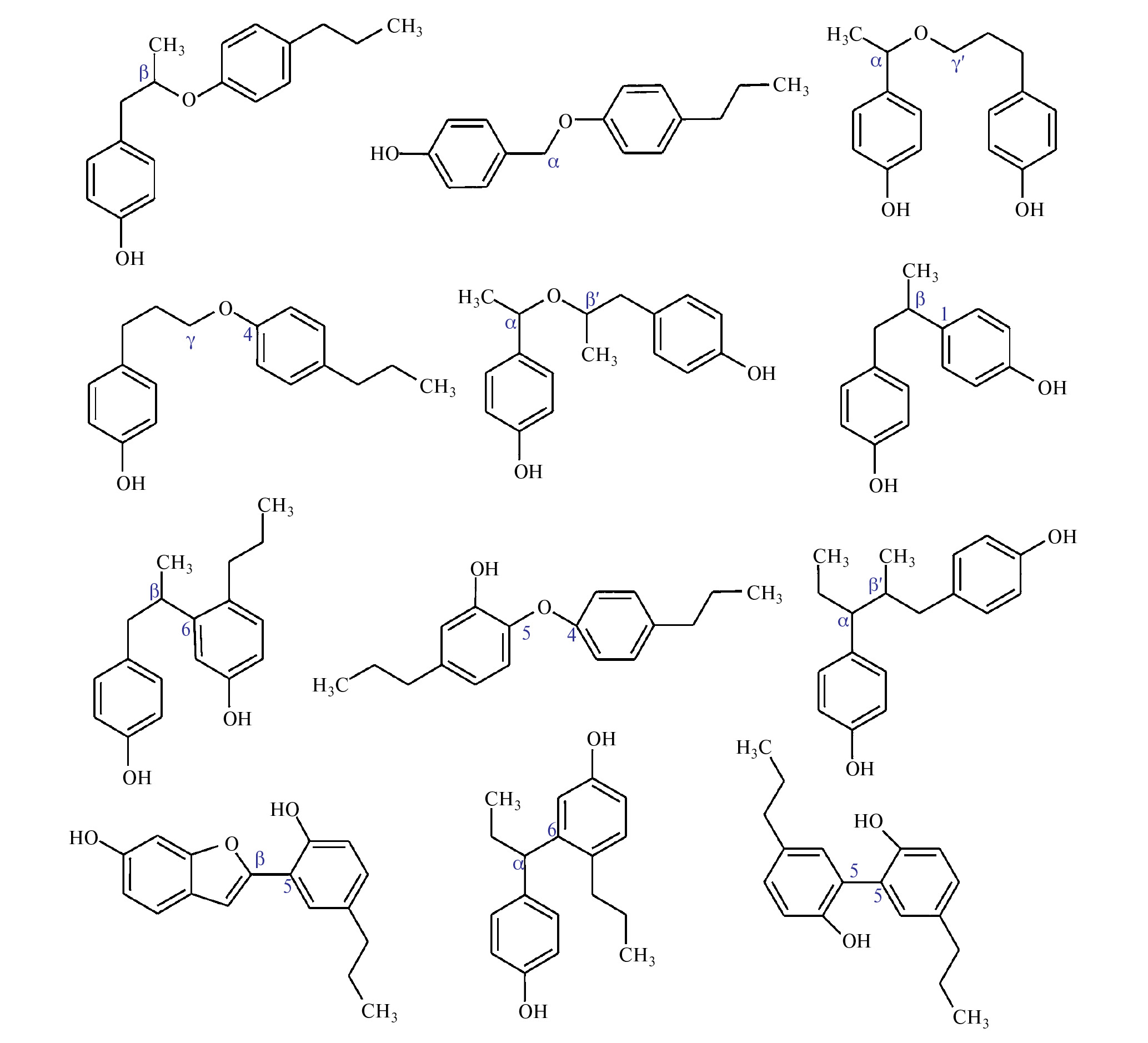 Рис. 3. Различные связи в структуре лигнина.