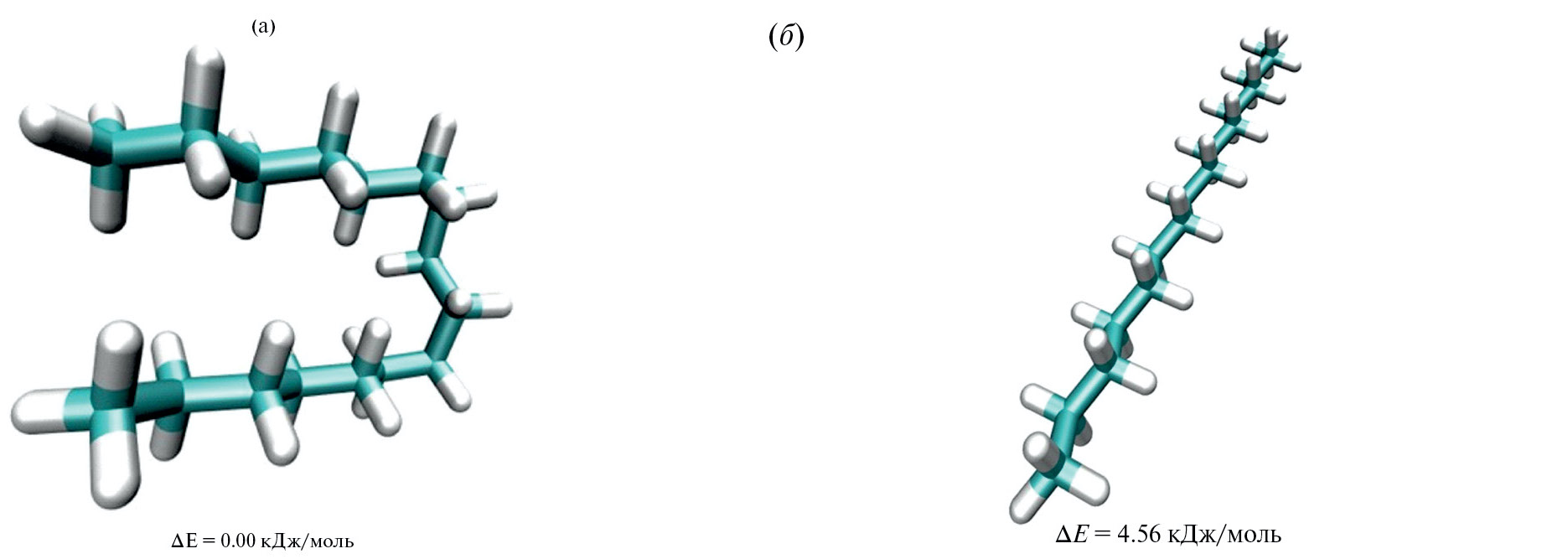 Молекулярная динамика и конформационный анализ были выполнены с использованием метода силового поля (GFN-FF) для моделирования взаимодействий между атомами в молекулах [36]. Для проведения конформационного анализа н-гексадекана была использована программа CREST [37].
