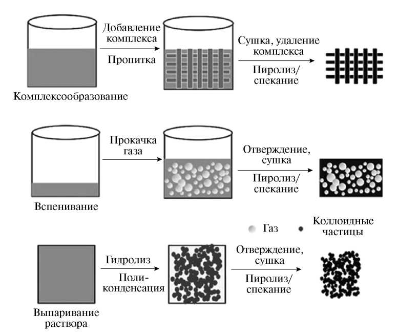 Примечательно, что в качестве порообразующих агентов могут выступать не только углеродистые вещества, но и неорганические соли. В силу тугоплавкости последних их извлечение из готового материала возможно только путем растворения.