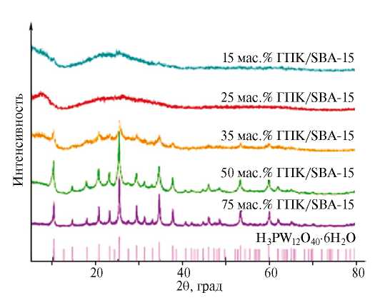 Таблица 4. Состав, текстурные свойства и количество кислотных центров в χ мас. % образцах ГПК/SBA-15 [80]