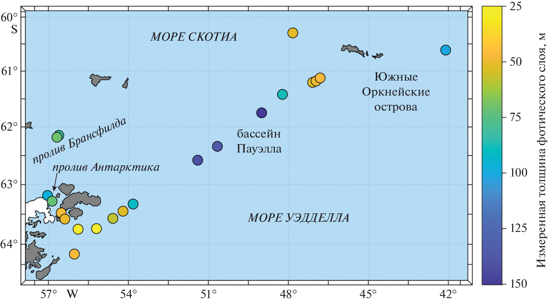 A method is proposed for constructing a regional algorithm for calculating the thickness of the euphotic zone from in situ measurements of the vertical profiles of the beam attenuation coefficient under the condition of one-parameter optical properties of water (Case-1 water). Using the proposed methodology, a regional algorithm for determining the thickness of the photic zone was developed based on the results of synchronous measurements of the beam attenuation coefficient and photosynthetically active radiation, performed in January 2022 as part of the 87th cruise of the R/V Akademik Mstislav Keldysh for the northwestern part of the Weddell Sea. For this region, an equation was obtained that makes it possible to estimate the photic zone depth with a relative reconstruction error of 18%.