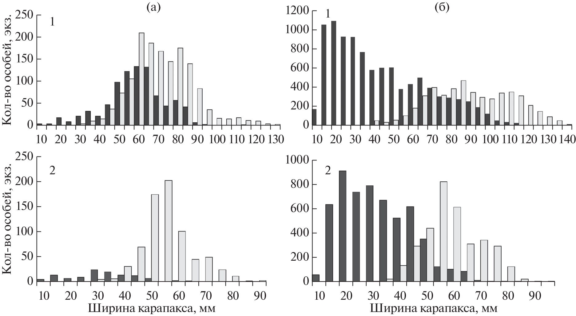 - Ernst B., Orensanz J.M., Armstrong D.A. Spatial dynamics of female snow crab (Chionoecetes opilio) in the eastern Bering Sea // Can. J. Fish. Aquat. Sci. 2005. V. 62. P. 250–268.