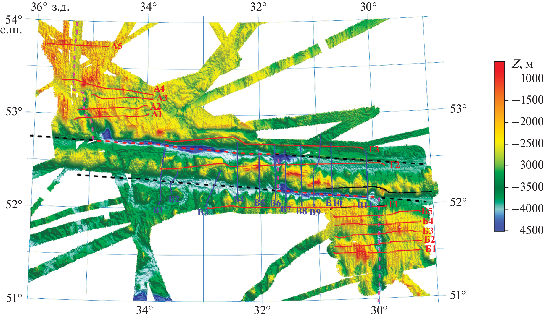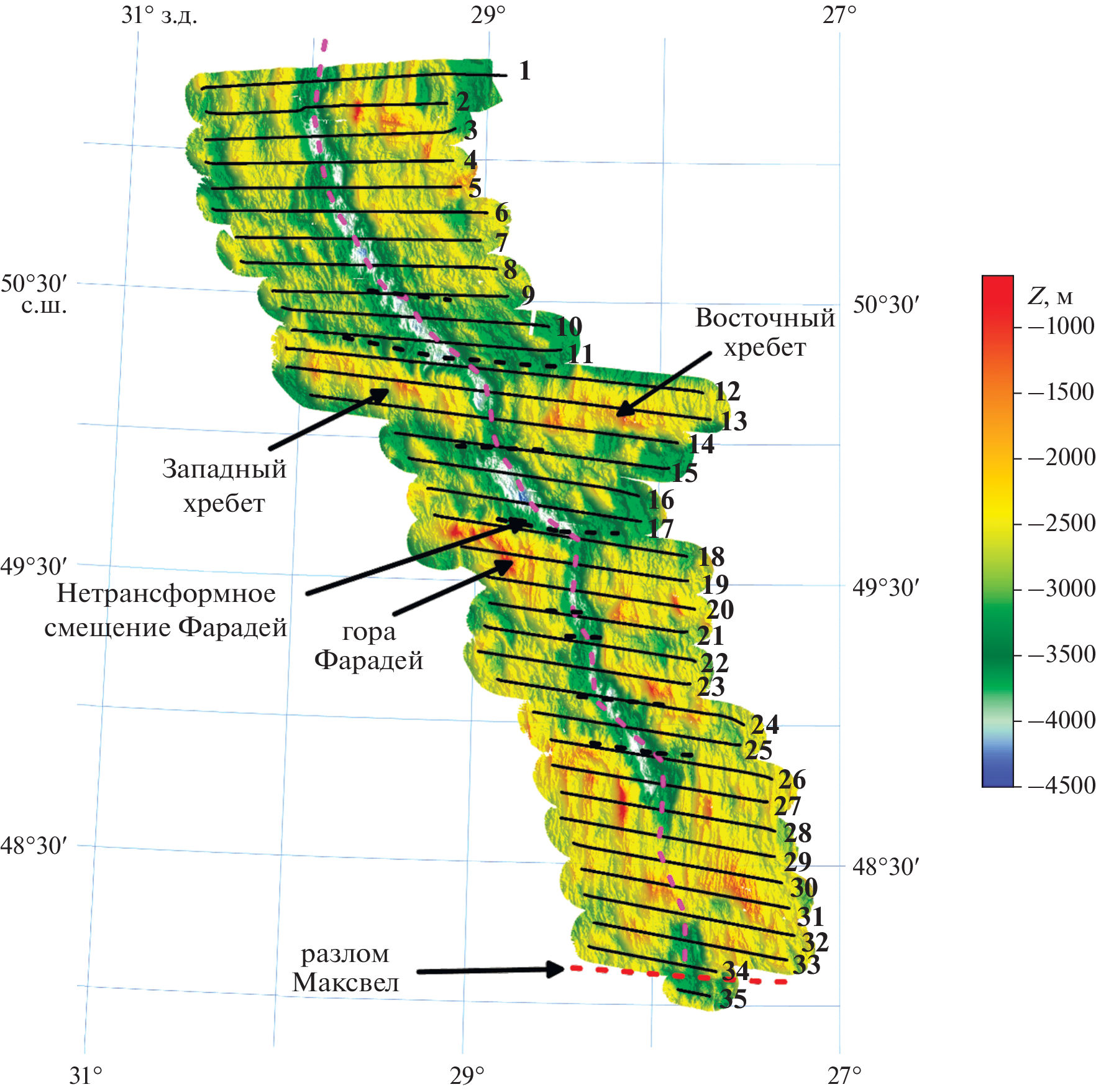 - Mével C., Cannat M., Gente P. et al. Emplacement of deep crustal and mantle rocks on the west median valley wall of the MARK area (MAR 23° N) // Tectonophysics. 1991. V. 190. P. 31–53.