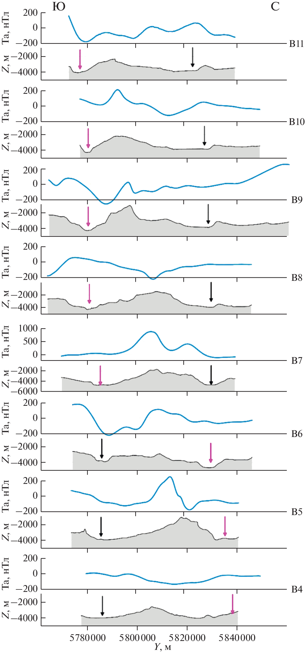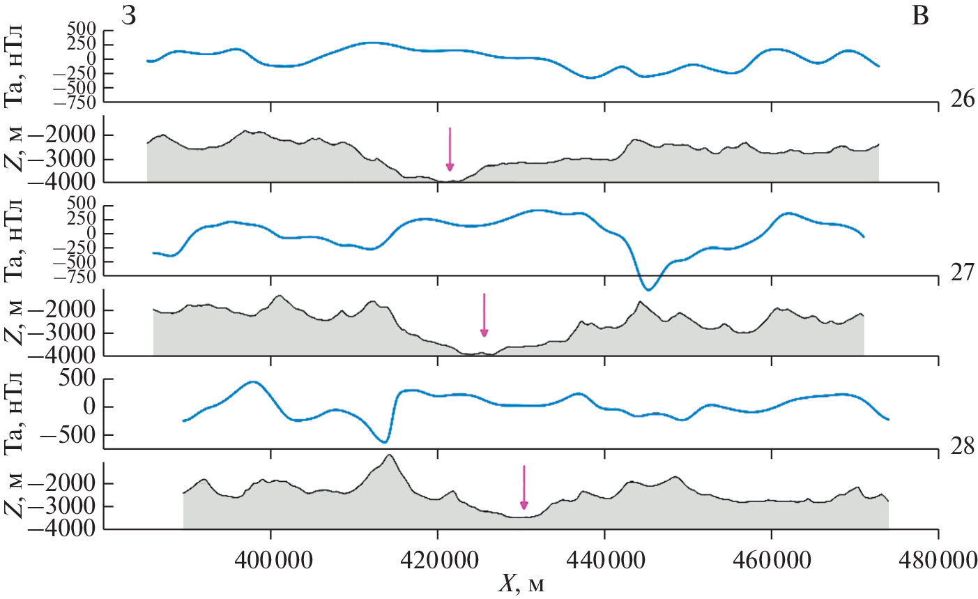 - Heirtzler J.R., Dickson G.O., Herron E.M. et al. Marine magnetic anomalies, geomagnetic field reversals, and motions of the ocean floor and continents // J. Geophys. Res. 1968. V. 73. P. 2119–2136.