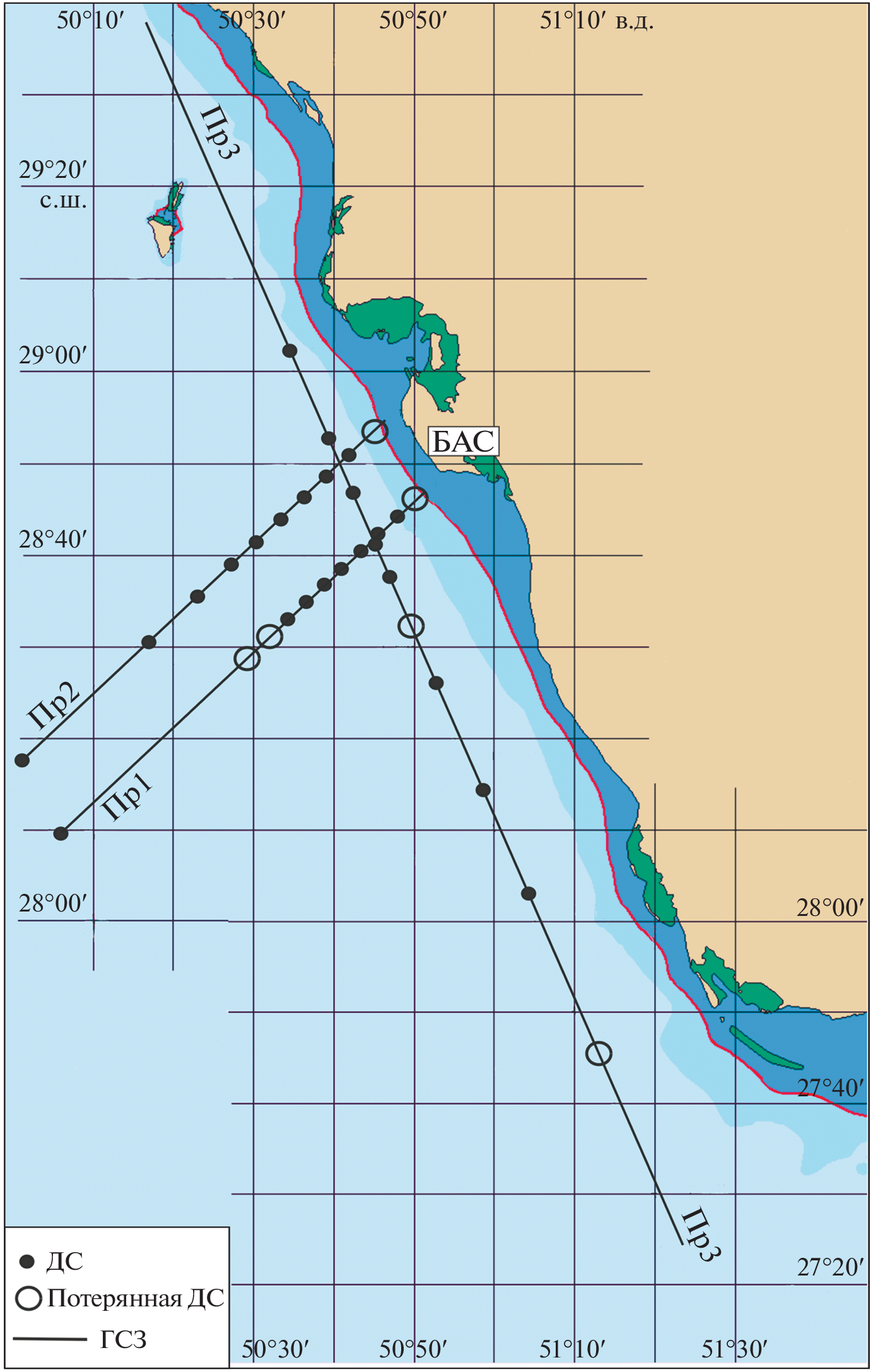 The article presents the results of seismic work performed by the DSS method in the Persian Gulf. Bottom analog type seismographs and seismic airgun sources were used in the works. The bottom seismographs were placed and the shooting was carried out according to three regional profiles with a length from 100 to 250 km. The main result of these studies was to obtain velocity-depth model of the sedimentary cover and the Earth’s crust up to Moxo boundary, which was revealed at a depth of about 43 km in the water area. Given that the thickness of the upper crust is only 4–5 km, and the speed characteristics of the remaining layers, the crust type can be attributed to the subcontinental Archean type. This situation (complete absence or drowning of the upper layer of the Earth’s crust) is typical for the waters closest to the Persian Gulf: the Black Sea, the Caspian Sea, the Mediterranean and the Red Seas. A structure was found in the Earth’s crust of the studied area, which may be a brachianticline having an isometric dome-shaped shape, which corresponds to the folding of the platform type in the areas of salt-dome tectonics. No faults have been found in the Earth’s crust of the Persian Gulf water area adjacent to the Bushehr Peninsula.