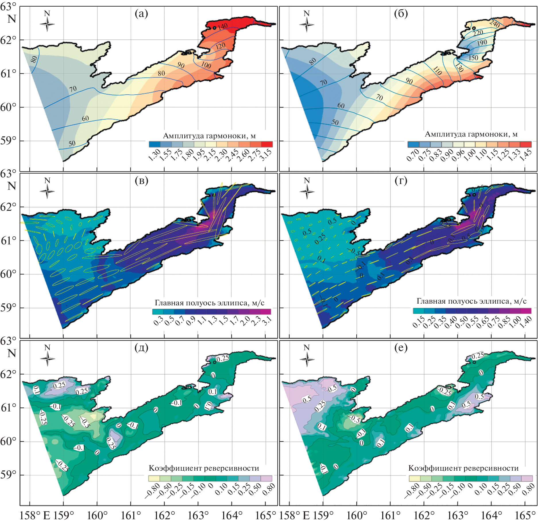 In this study, the Delft3D-Flow hydrodynamic model was used to determine the characteristics of the main tidal waves and currents in the Penzhina Bay (Sea of Okhotsk, Russia). The initial and boundary conditions are set according to the TPXO9 model data, the salinity and water temperature for each model layer are set based on the reanalysis data of the HYCOM ocean general circulation model, with a time step of 3 h. E-uropean Center for Medium-Range Weather Forecasts ECMWF (European Center for Medium-Range Weather Forecasts) reanalysis ERA-5 was used as meteoforcing. Modeling was performed for the ice-free period from May to September 2005. Maps of cotidal lines, tidal ellipses, and reversibility coefficient for the main tide waves: semidiurnal wave M2 and diurnal wave K1 were constructed. The model was verified by comparing the published and calculated harmonic components for 9 sea level monitoring points located in the Penzhina Bay. Conformance evaluation generally shows a high degree of consistency between model and reference data. The values of the coefficient of determination R2 between the series formed by the model and published harmonic components are in the range of 0.96–0.99. According to the magnitude of relative errors, the simulation results are divided into two consistency categories – high (1.48–2.14%) and satisfactory (2.93–4.27%). Spatial patterns of distribution for the values of relative errors were not found. A certain inconsistency in the results is presumably due to the time discretization of the observation time support and the short sea level monitoring data series used to calculate the published harmonic components at the Penzhina Bay.