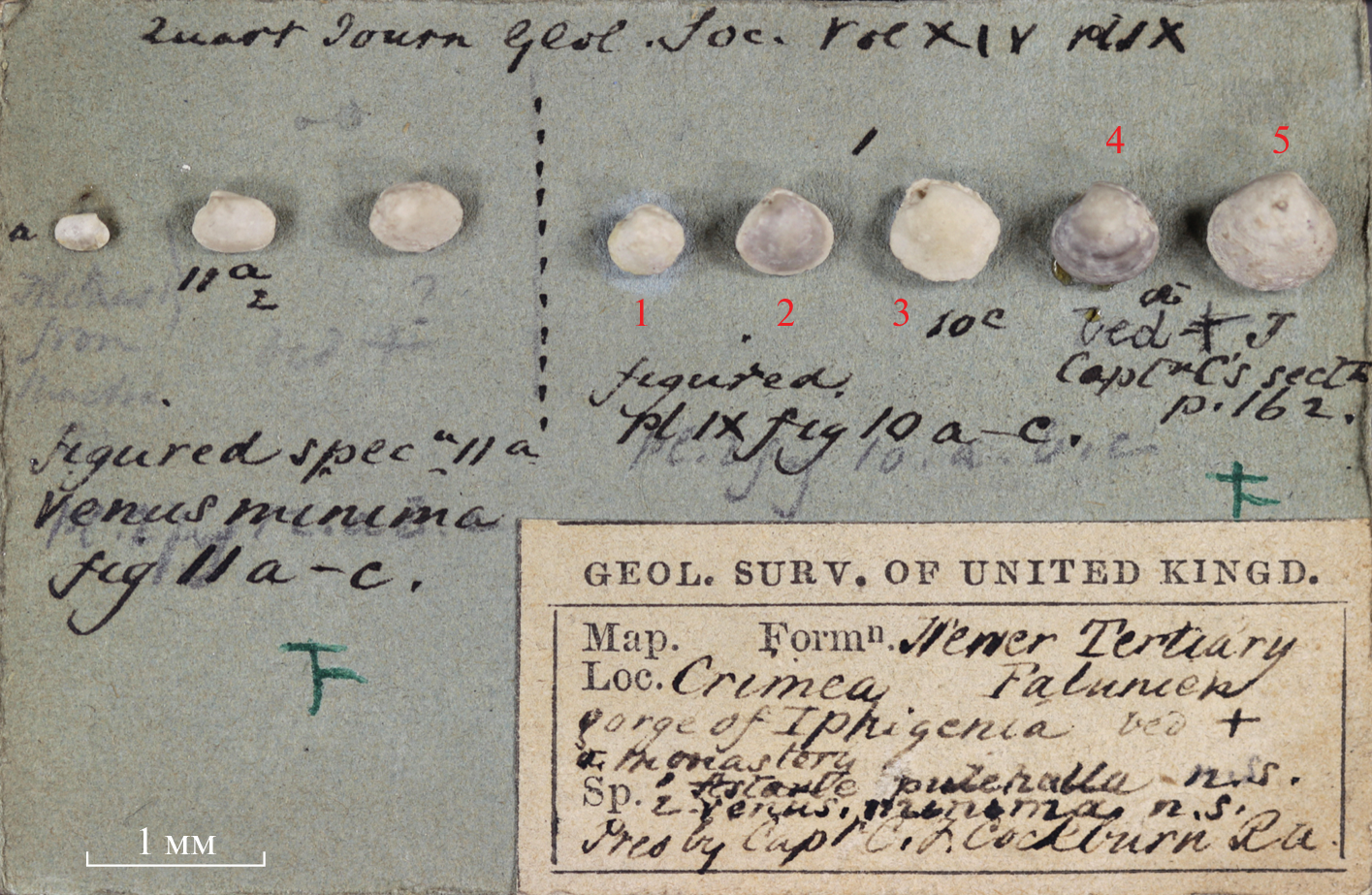 - Baily W.H. Descriptions of fossil Invertebrata from the Crimea // Quart. J. Geol. Soc. London. 1858. V. 14. Pt 2. № 58. P. 133–163.