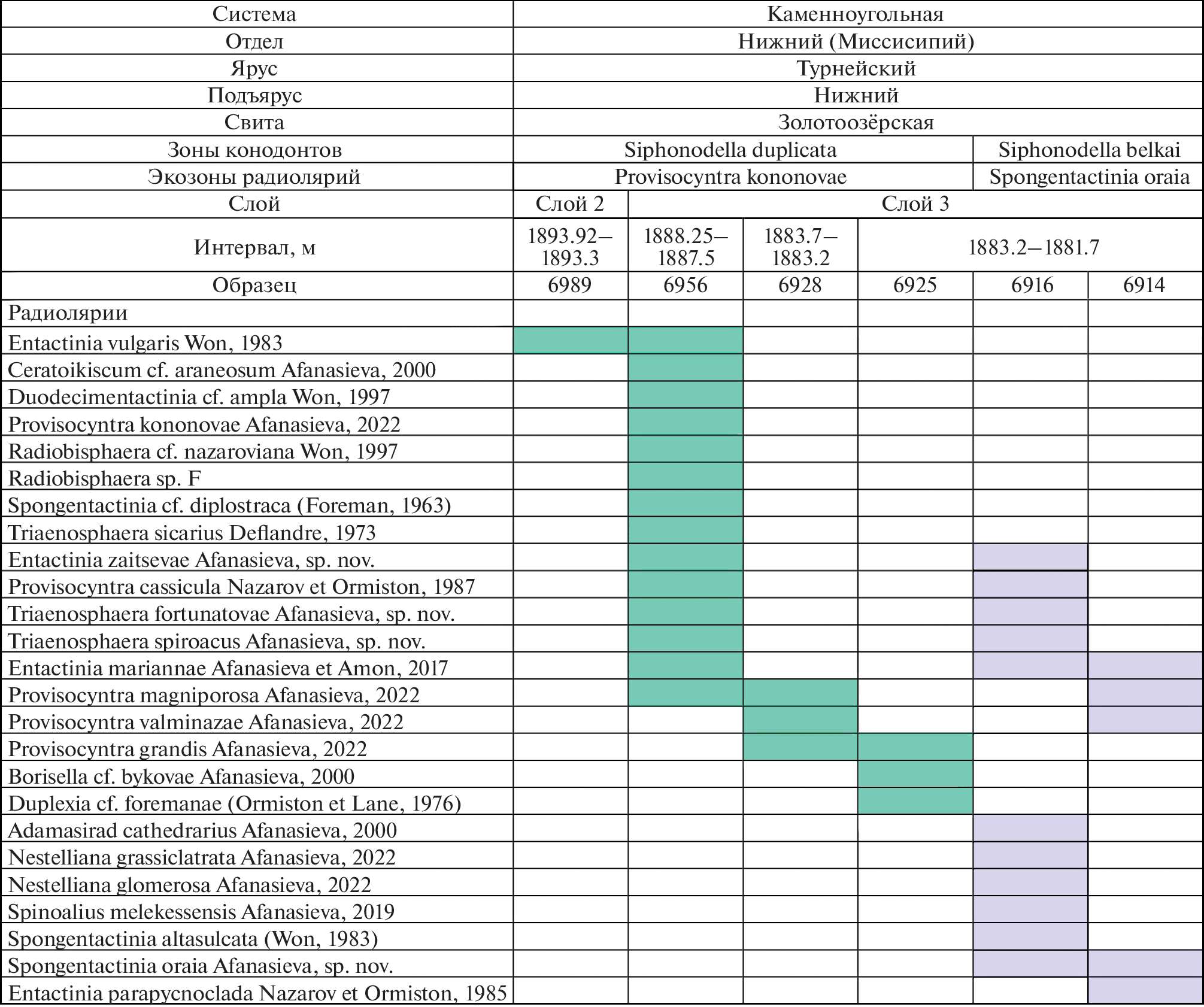 4. Афанасьева М.С. Новое семейство радиолярий позднего палеозоя Provisocyntridae fam. nov. // Палеонтол. журн. 2022б. № 2. С. 9–20.