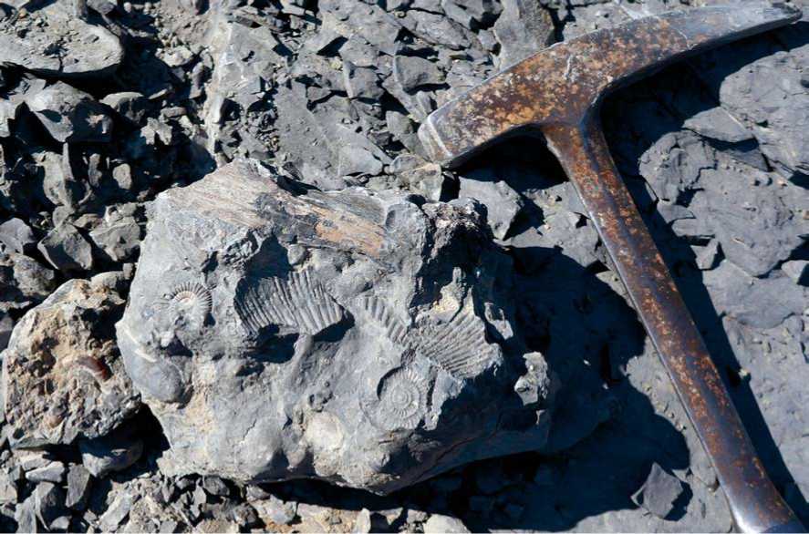 Рис. 3. Конкреция с Infragarantiana primitiva (Wetzel) и другими аммонитами на месте находки.