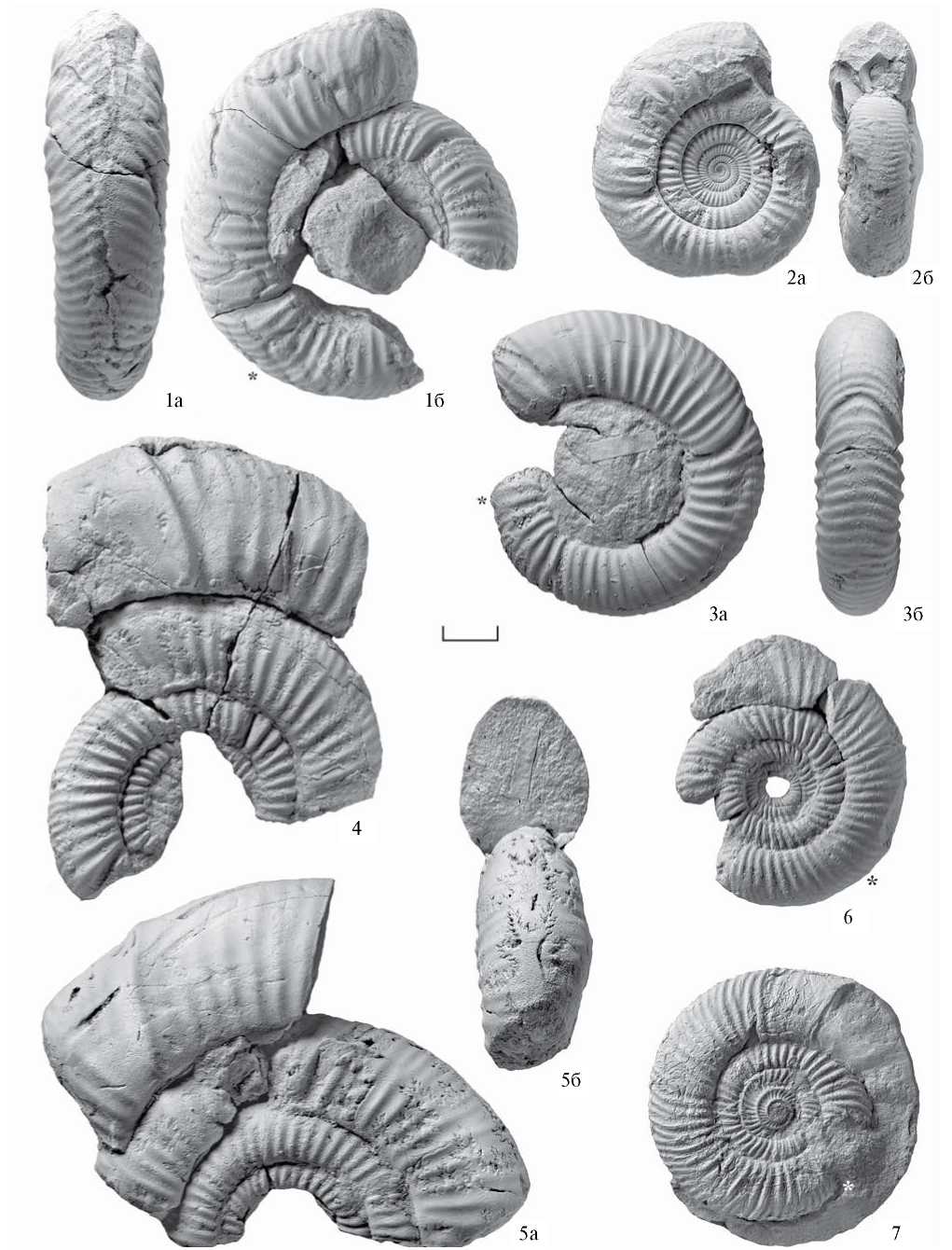Первые находки аммонитов рода Vermisphinctes приурочены к средней части зоны Niortense (подзона Rostovtsevi) р. Бол. Зеленчук (местонахождение 34). Эти аммониты еще очень близки к макроконхам некоторых Leptosphinctes, отличаясь от них гораздо бо́льшими размерами и скульптурой, сохраняющейся до конца жилой камеры даже на ядрах (рис. 4). Сохранность и недостаток материала обусловливают их определение в открытой номенклатуре – Vermisphinctes aff. martiusii (d’Orbigny) [M].