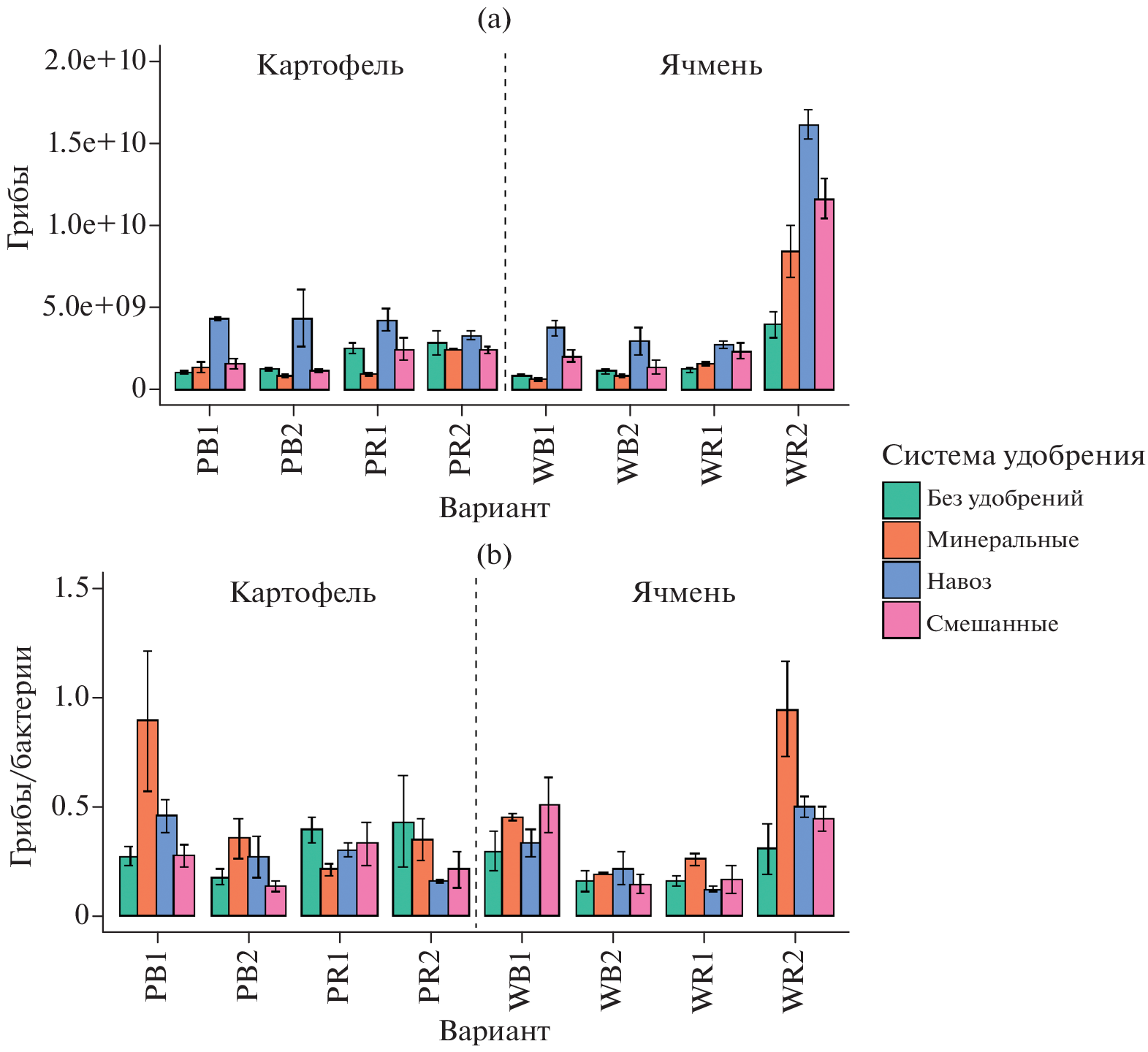 - Semenov M.V., Krasnov G.S., Semenov V.M., van Bruggen A. Mineral and Organic Fertilizers Distinctly Affect Fungal Communities in the Crop Rhizosphere // J. Fungi. 2022. V. 8. P. 251. https://doi.org/10.3390/jof8030251