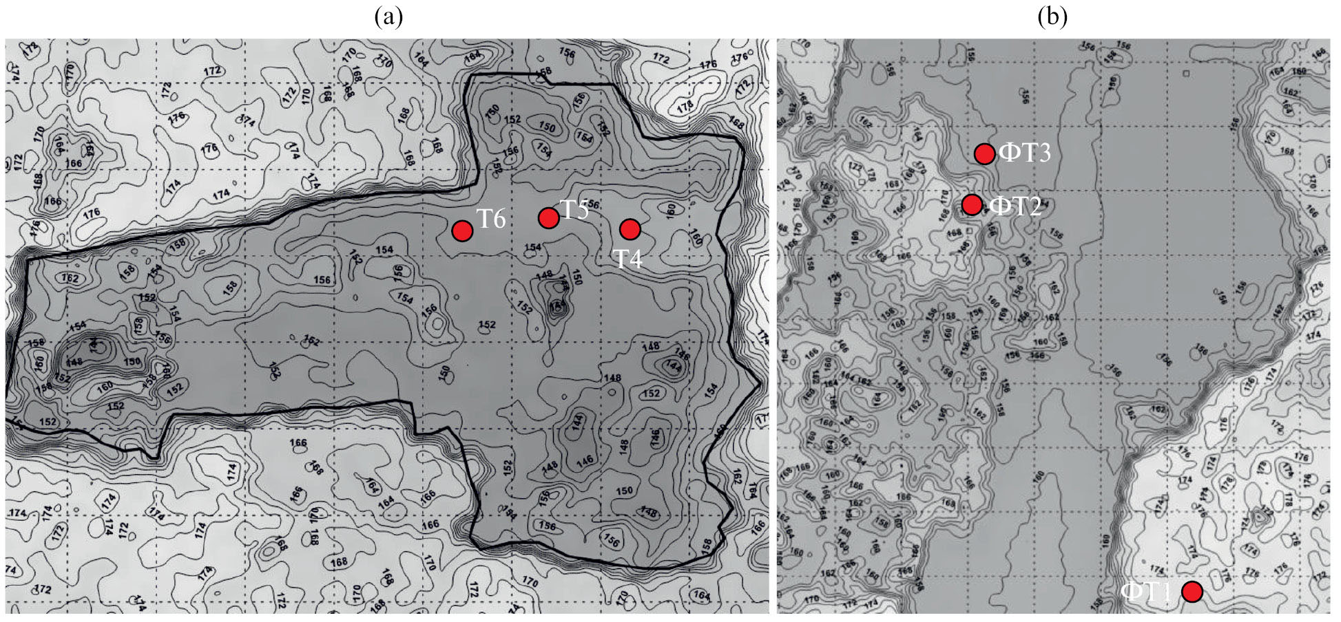 Фоновой послужила территория вблизи карьера (рис. 1), на которой было заложено 9 участков. Ключевыми выбраны три: ФТ1 – ельник чернично-зеленомошный на подзолистой почве (175 м над ур. м.) (автоморфные условия); ФТ2 – ельник осоково-сфагновый на торфяно-подзолисто-глеевой (169 м над ур. м.) (полугидроморфные); ФТ3 – сосняк сфагновый на торфяной олиготрофной (164 м над ур. м.) (гидроморфные) (табл. 1).