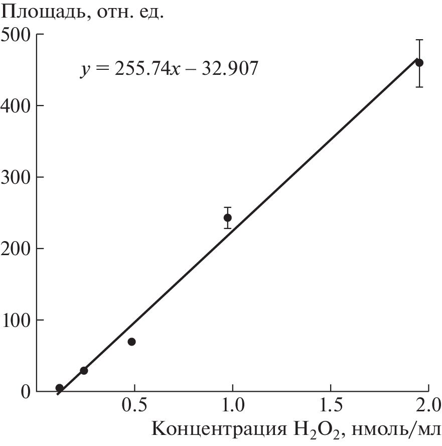 The device and principle of operation of a luminometer designed to determine the concentration of hydrogen peroxide in aqueous solutions by measuring the intensity of the light flux are described. The key points to which attention should be paid in the manufacture of the device are indicated. The results of laboratory tests are described, according to which, in the range of hydrogen peroxide concentrations from 0.12 to 1.95 × 10−6 М, the linear dependence (r2 = 0.97) of signal intensity from H2O2 concentration is preserved. The results of measuring the content of hydrogen peroxide in wheat leaves during deetiolation are presented.