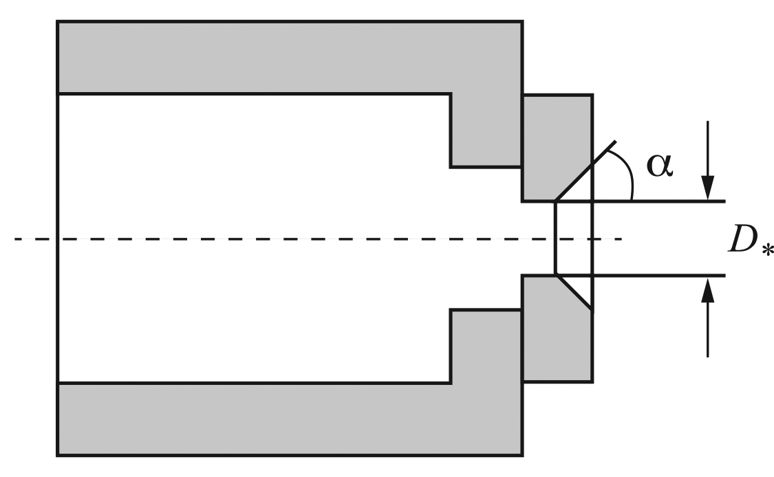 Анализ работы установки выполнен с использованием сопел, имитирующих отверстие в тонкой стенке. Сопла, обозначенные как С1, С2, С3, имеют диаметры сечения D* = 0.20, 0.30, 0.72 мм соответственно. Сопла изготовлены из быстросъемных заглушек для труб с внешним диаметром 6 мм (рис. 2). В торце заглушки выполнены цилиндрический канал диаметром D* и конус с углом при вершине 2α = 80°. Глубина конуса зависела от диаметра отверстия и соответствовала условию минимизации цилиндрического канала сопла.