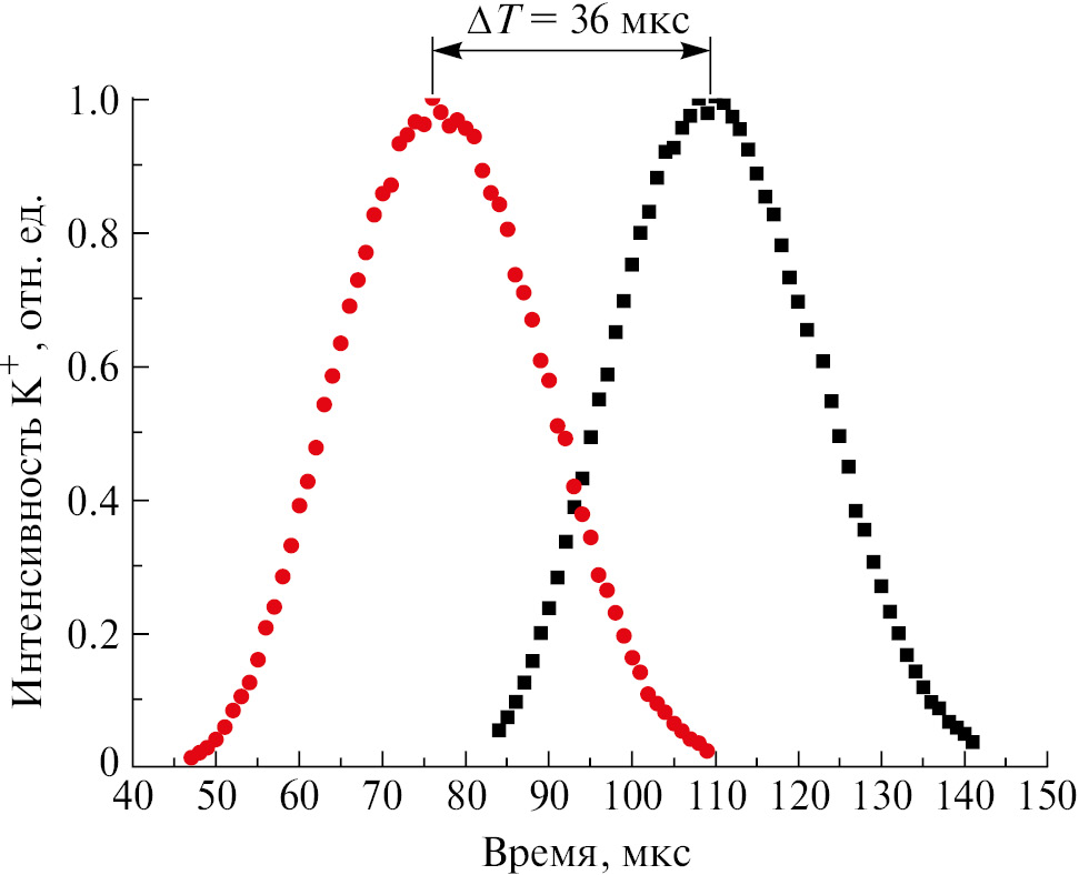 В заключение отметим, что предлагаемый способ определения наиболее вероятной скорости пучков, обладающих достаточной поступательной энергией и энергией диссоциации на ионы, равной единицам эВ, несмотря на известные ограничения, позволяет повысить точность ВП-измерений и избежать утомительной процедуры анализа и определения аппаратурных задержек. Немаловажным фактором является также ненужность масс-спектрометра, отсутствие высокого вакуума в камере регистрации и селективность ионизации только молекул пучка.
