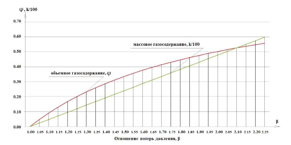 Обозначим через β безразмерную характеристику потерь двухфазного потока, приведенную к потерям аналогичного по скорости однофазного потока, которая зависит только от массового газосодержания k:
