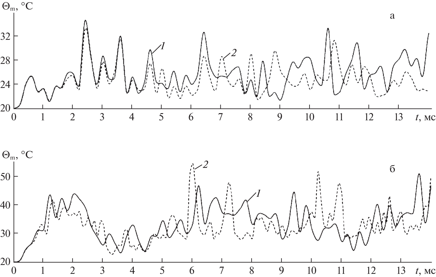 A mathematical model of non-isothermal elastic-viscous-plastic deformation of flexible shallow shells with multidirectional reinforcement structures has been developed. Wave processes and weak resistance to transverse shear in curved panels are modeled in terms of Ambartsumian’s bending theory. The geometric nonlinearity of the problem is taken into account in the Karman approximation. The composition components are assumed to be isotropic materials, and their plasticity is described by the flow theory with a loading function depending on the strain rate and temperature. The connectedness of the thermomechanical problem under dynamic loading of composite shallow shells is taken into account. In the transverse direction of constructions, the temperature is approximated by a 7th order polynomial. The formulated two-dimensional nonlinear initial-boundary value problem is solved using an explicit numerical scheme of time steps. The thermo-elastic-visco-plastic and thermo-elastic-plastic behavior of fiberglass and metal-composite shallow shells orthogonally reinforced in two tangential directions, loaded in the transverse direction by an air blast wave, has been studied. It is shown that flexible curved fiberglass panels at certain points can additionally heat up by 14…27°C, and similar metal-composite conctructions – by 70°С or more. In this case, peak temperature values are kept at short-term intervals – on the order of fractions of 1 ms. It is shown that, unlike flexible plates, similar shallow shells (with the same reinforcement structure and the same characteristic dimensions) under dynamic loading in the transverse direction must be calculated not only taking into account the dependence of the plastic properties of the composition components on their strain rate, but also taking into account thermal response in such thin-walled constructions. A more intense inelastic deformation of curved composite panels is observed when they are loaded from the side of the convex front surface.