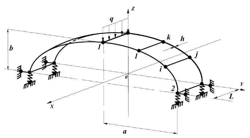 Рис. 4. Расчетная схема эллиптического цилиндра при пружинном опирании