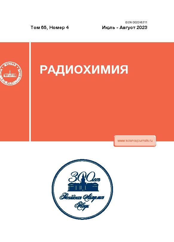 Изучены процессы экстракционного извлечения стабильных изотопов цезия и стронция растворами макроциклических полиэфиров в органических растворителях из азотнокислых растворов. Исследовано влияние структуры краун-эфира и типа растворителя на коэффициенты распределения цезия ( D Cs) и стронция ( D Sr). Опробованы экстракционные системы для совместного извлечения цезия и стронция, в которых в качестве растворителей использовали 1,1,7-тригидрододекафторгептанол и хлорзамещенные углеводороды. Показано, что наиболее высокие D Cs и D Sr при совместном извлечении металлов наблюдаются при использовании смеси ДТБДБ18К6 и ДЦГ18К6. Экспериментальные данные подтверждают высокую селективность краун-эфиров для извлечения цезия и стронция в отдельную фракцию при обращении с радиоактивными отходами.