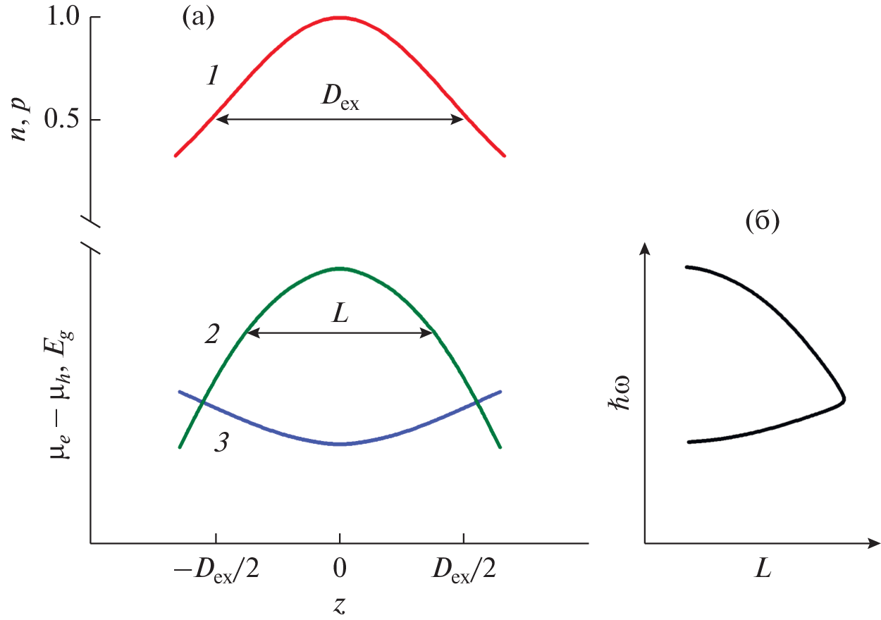experimentally proved that this is enhanced spontaneous (stimulated) emission with the propagation specifics in the heterostructure. It has been shown that the electron–hole plasma is maintained in a “threshold” state with an inversion of the electron population in a narrow energy range because of high emission intensity. In this regard, the electron temperature and therefore, their distribution between valleys, etc., becomes uniquely related to their density. It has been found that limiting the inversion meant the emission amplification saturation when the amplification is limited by the energy transport of charge carriers to the levels from which they are forced to recombine. It has been determined that the transport being slowed down by the heating of carriers because of their interaction with emission determines the dynamics of the emission as a whole and its spectral components when the temperature of the carriers is related to their density.