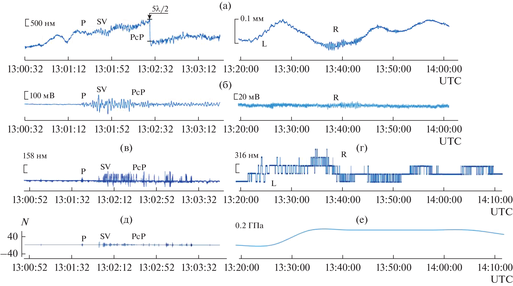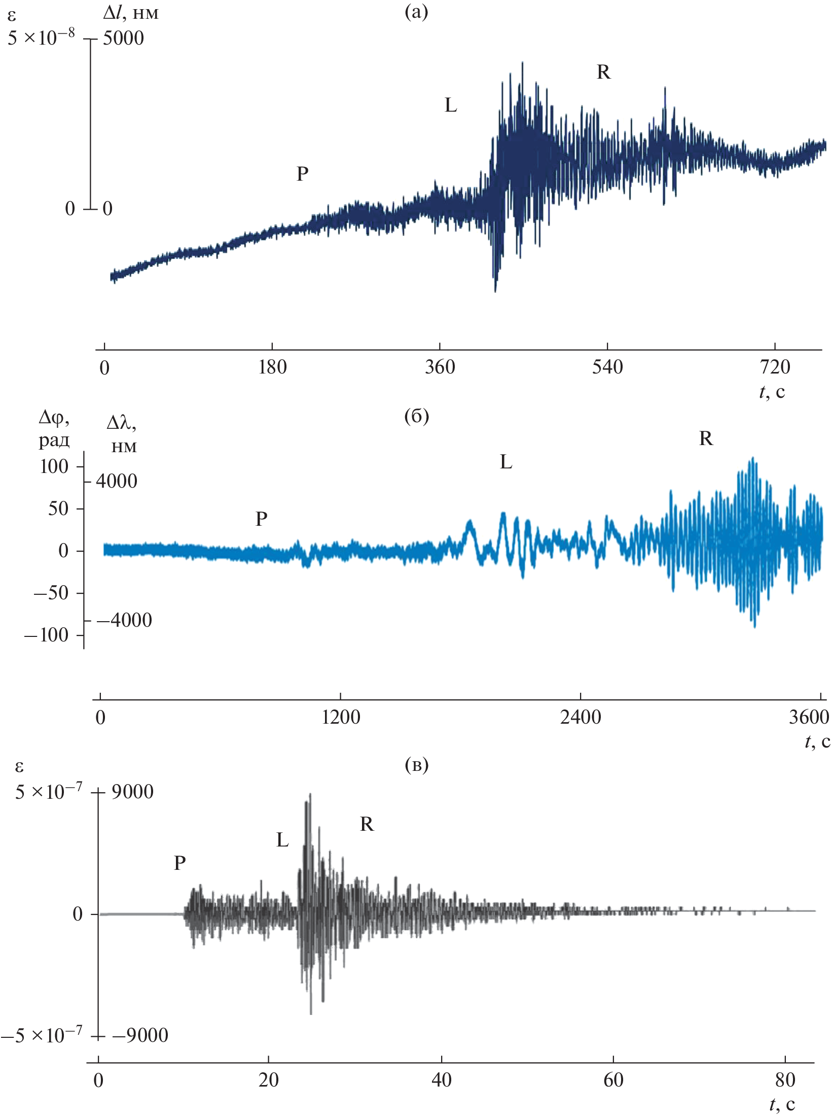 The results of unique experiments on synchronous recording of oscillations of earth’s surface with three laser interferometers–deformographs spaced at a distance of 6740 km, obtained during 2016–2020, are considered: two 100-m laser deformographs (Fryazino, Moscow oblast) and one 18-meter (Karymshina site, Kamchatka krai). It is shown that frequency-stabilized and thermocontrolled lasers, as well as systems for registering shifts of the compensation and modulation type interferogram provide an absolute instrumental resolution of 0.1–0.01 nm.