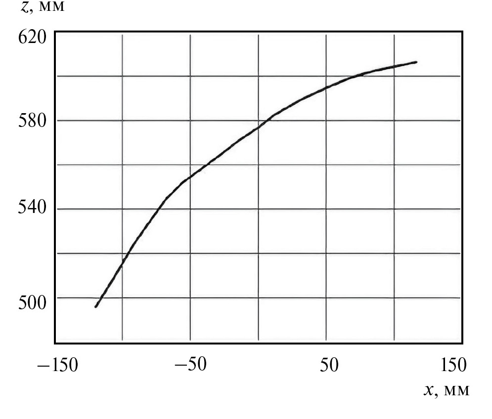 Фокальная кривая, рассчитанная в диапазоне частот 9…11 ГГц, показана на рис. 15.