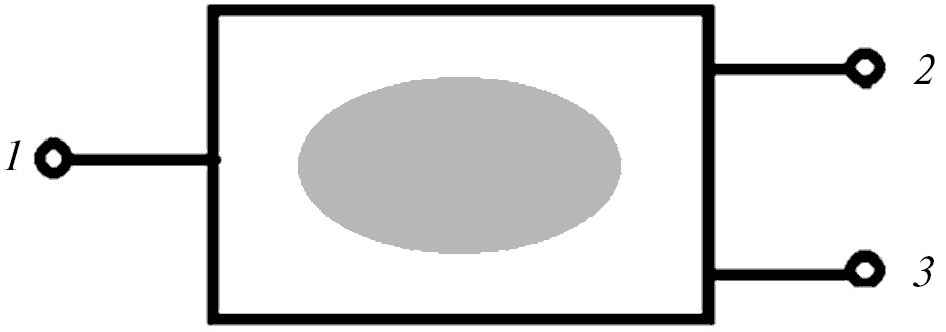 Рис. 1. Ячейка Флоке общего вида как СВЧ-многополюсник: 1 — порт, соответствующий линии передачи; 2, 3 — порты, соответствующие волнам волновода Флоке.