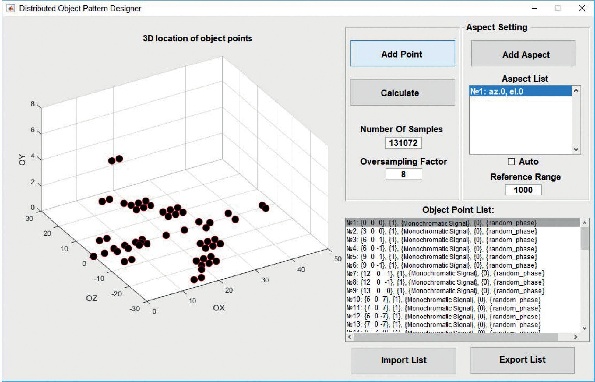 Как правило, количество точек модели достаточно велико. Это десятки, сотни, а в некоторых случаях тысячи точек. При имитационном моделировании точки модели должны замещаться излучающими антеннами [6]. Учитывая большое количество точек, это