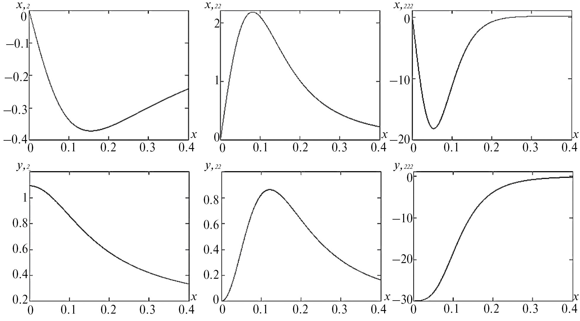 Третья производная может быть выражена через производные низших порядков из системы дифференциальных уравнений для решения (5)