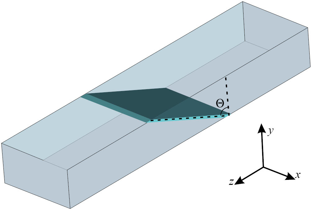 Рис. 7. Компьютерная модель вакуумного окна в виде наклонно расположенной слюдяной пластины в волноводе.