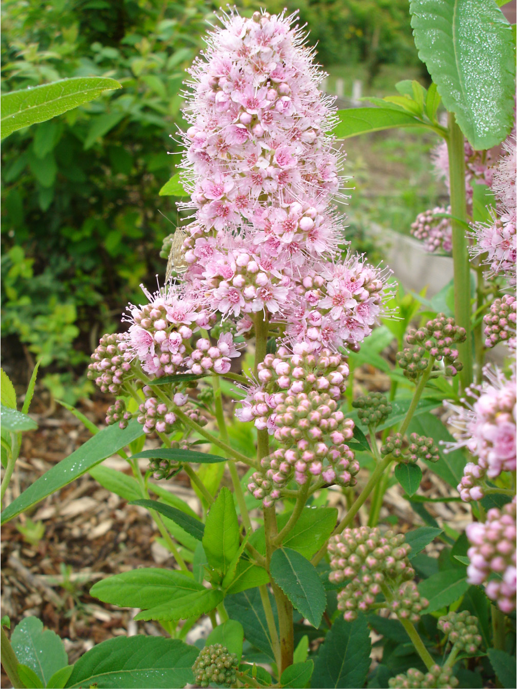 S. humilis — кустарник высотой от 0.2 м до 0.5 м. Молодые побеги, оси соцветия и гипантий густо опушены ржавовойлочными волосками. Листья эллиптические, реже яйцевидные (длина в 1.5–2 раза больше ширины), сверху нередко белесые от сильно развитого воскового налета, зубчатые только в верхней половине пластинки. Соцветие — компактная яйцевидная или пирамидально-яйцевидная метелка, 2.5–10 см длиной (рис. 1). Встречается в лиственничных и березовых лесах, на лесных опушках, по берегам рек и ручьев: предпочитает избыточно увлажненные местообитания. S. humilis произрастает в Восточной Сибири и на Дальнем Востоке России [9–12].
