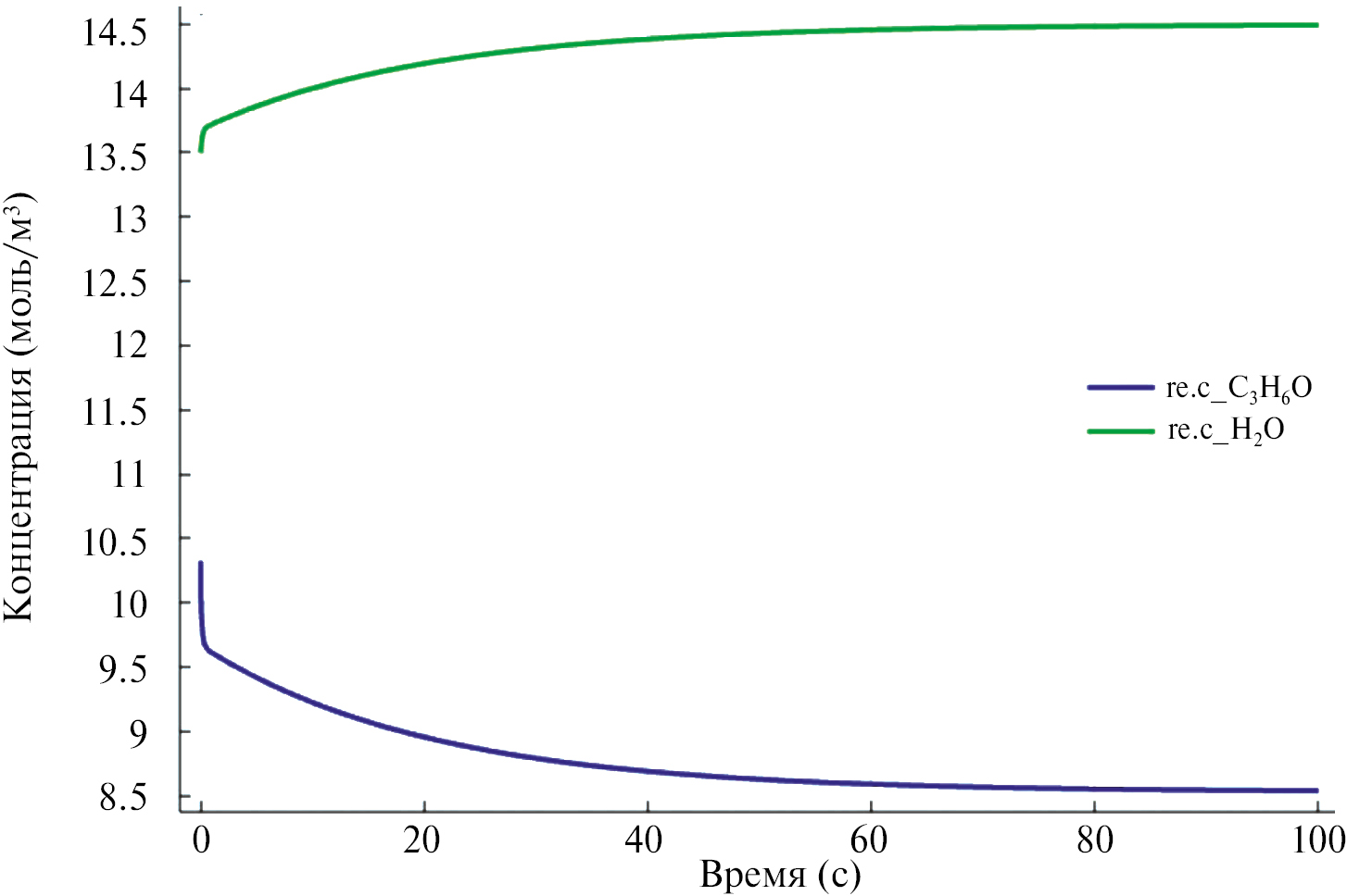 Рис. 2. Распределение концентраций ацетона и воды.