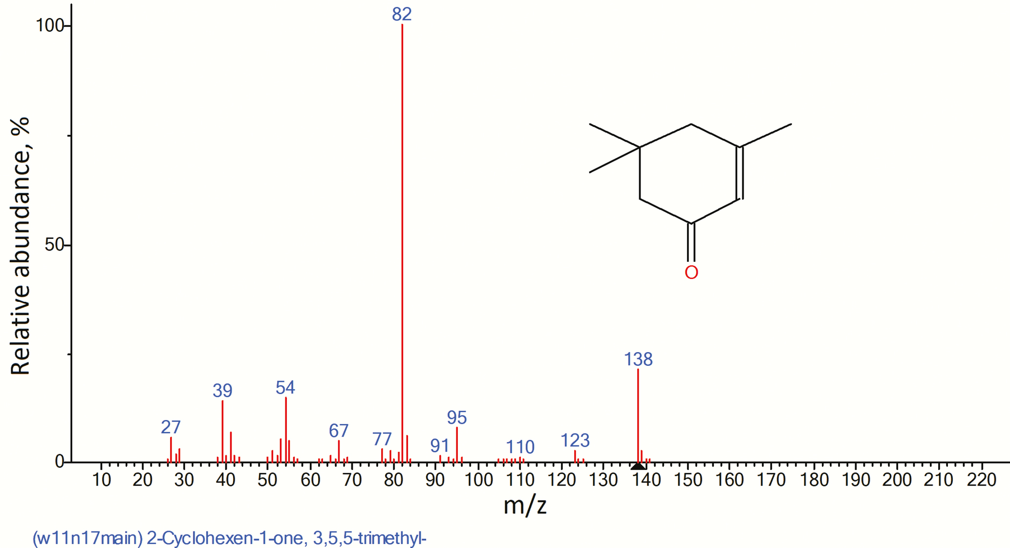 Рис. 12. Полученный масс-спектр изофорона.