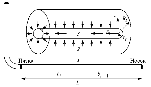 В [6] представлена модель однофазного течения в горизонтальном стволе скважины, учитывающая не только перечисленные выше перепады давления, но и потери давления, вызванные притоком жидкости. Экспериментально было показано, что при ламинарном течении в горизонтальном стволе потери давления увеличиваются, а при турбулентном течении уменьшаются.