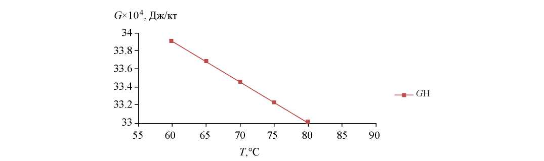 Из последнего уравнения следует, что зависимость тока в электролизере определяется как конструктивными параметрами, в частности, площадью анода и катода S, расстоянием между электродами d, так и технологическими параметрами: ni – концентрацией рассола и его температурой Т, μ – динамической вязкостью. Формула (3) позволяет также определять температурную зависимость вольт-амперной характеристики электролизера с учетом изменения вязкости электролита при изменении температуры (рис. 7). Зная зависимость тока от конструктивных и технологических параметров, можно определить производительность электролизера и удельные затраты энергии G (Дж/кг) (рис. 8, 9):