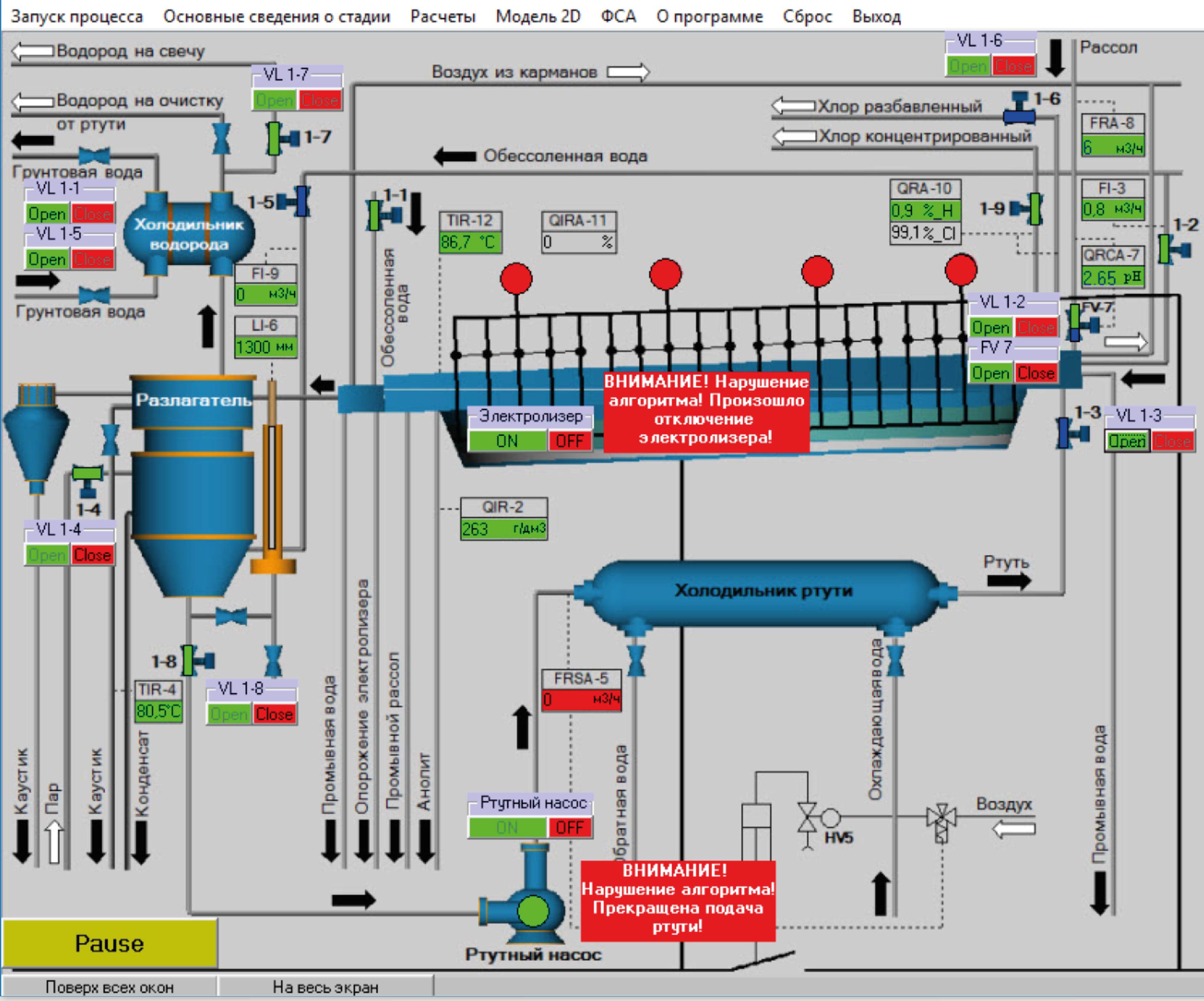 12. Fig. 11. Simulation complex “Stage of electrolysis of production of caustic soda, chlorine and hydrogen”.