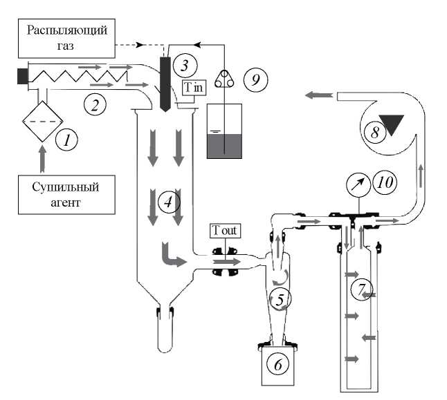 Принципиальная схема установки Büchi Mini Spray Dryer B-290 показана на рис. 3.