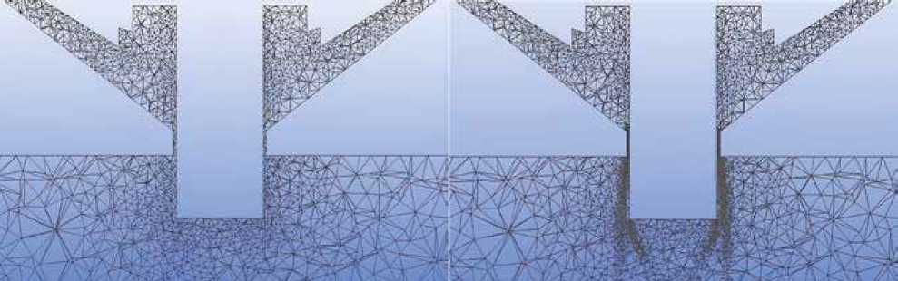 Рис. 5. Расчетные сетки: слева – исходная, справа – адаптированная.