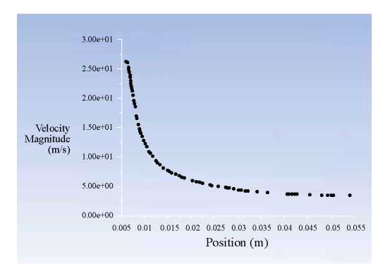 Рис. 7. Фрагмент окна программы: скорость распыляющего воздуха вдоль вертикальной оси аппарата.