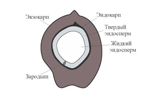 Рис. 4. Строение плода кокосовой пальмы (Coccos nucifera Linnaeus, 1753).