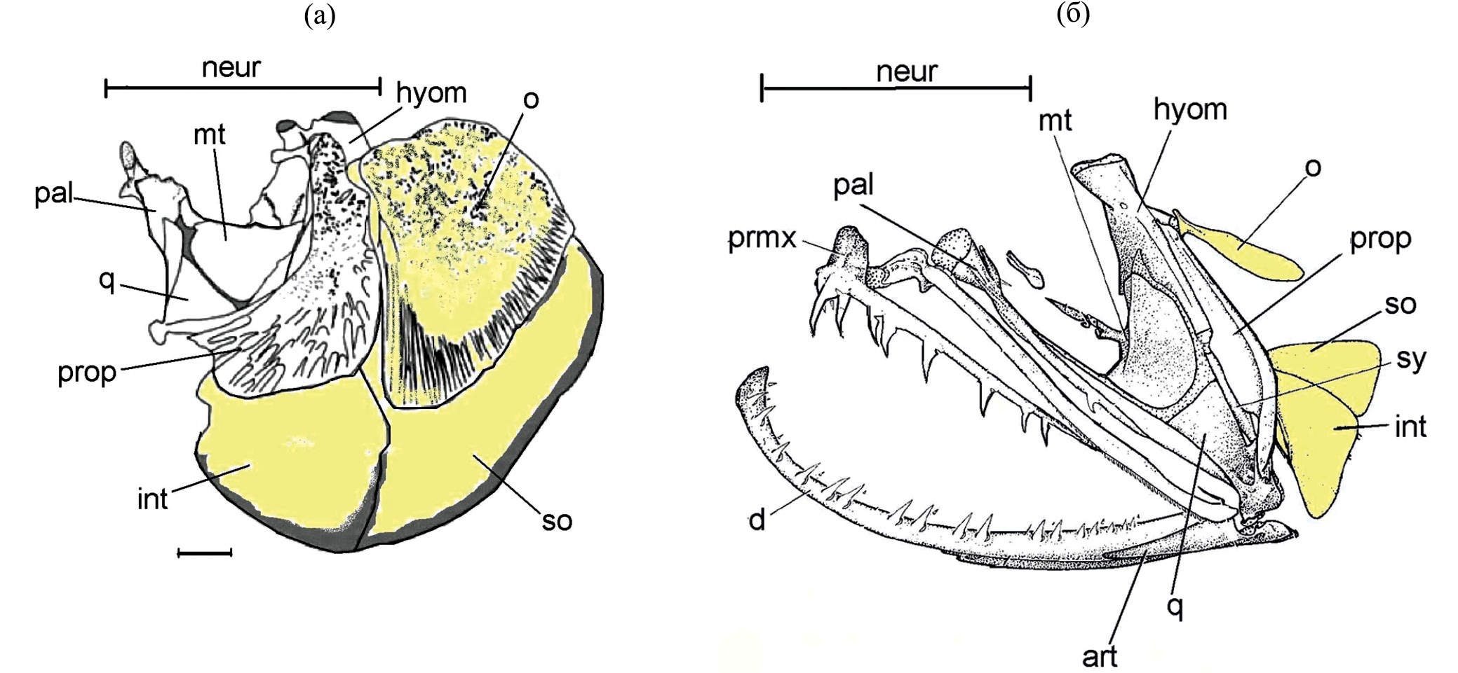 - Gosline W. A. 1989. Movable head armature in higher teleostean fishes // Environ. Biol. Fish. V. 24. № 1. P. 75–79. https://doi.org/10.1007/BF00001612