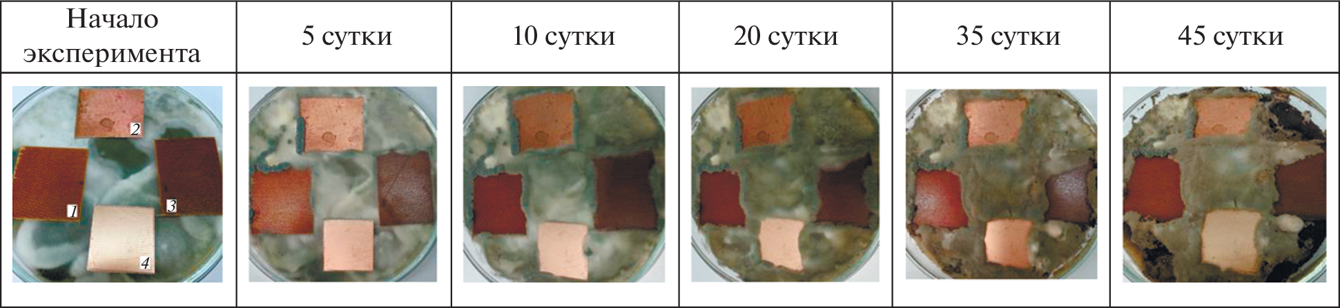 Corrosion resistance of structural materials has become one of the most important aspects in the electronics industry. In particular, biodeterioration and biocorrosion lead to operational failures and high economic losses. Biocorrosion of copper and base materials applied for the production of printed circuit boards is studied in this work. The inevitable change in the properties and destruction of textolite and glass textolite that are used in the composition of radioelectronic components and are in contact with copper often results in violations of the performance of devices and equipment. An attempt to explain the role of biofilms of microfungi as the main factor of mycological corrosion of copper in the composition of some electronic-industry products is made in this work.