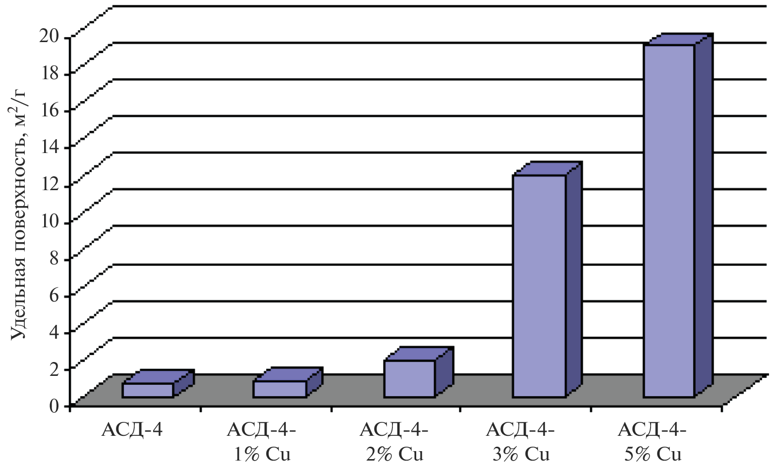 A Comparative Analysis of the Adsorption Properties and Porous Structure of an ASD-4 Powder Impregnated with Copper Formate in Different Concentrations