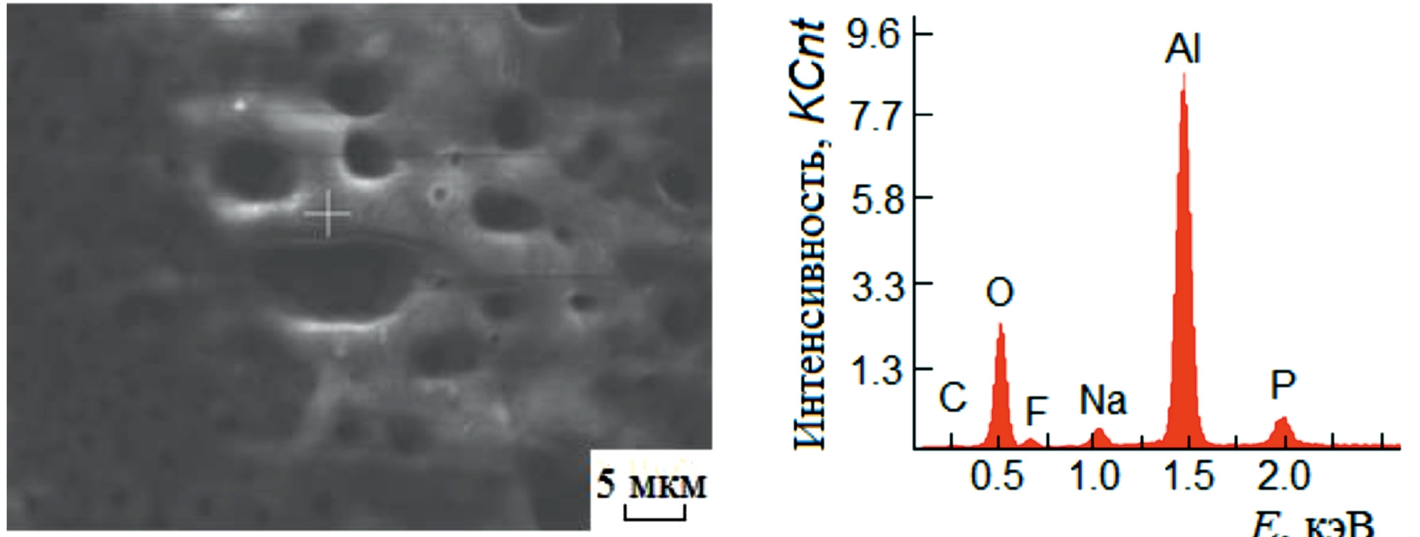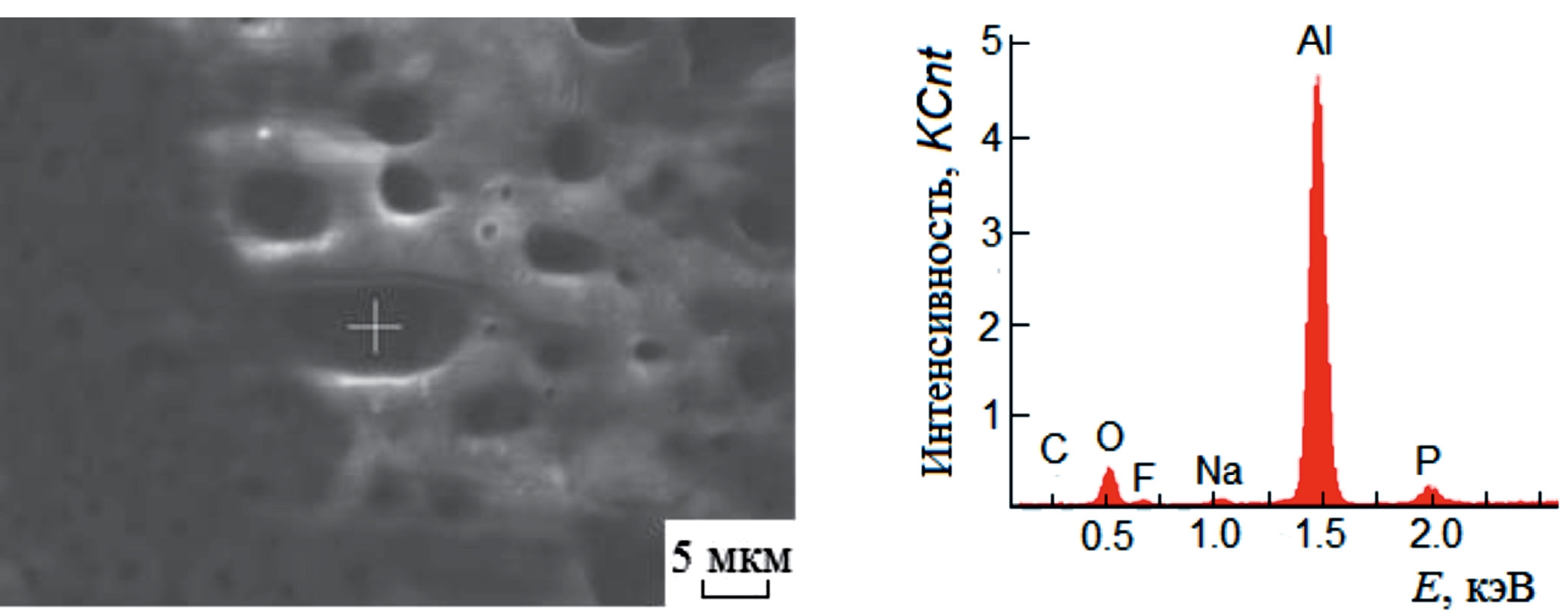 Для изучения свойств покрытий из средней части оксидированных образцов вырезали квадратные участки со стороной 5 мм. Элементный состав определяли методом энергодисперсионного рентгеновского микроанализа с применением растрового электронно-ионного микроскопа FEI Quanta 200 3D с энергодисперсионным микроанализатором AMETEK EDAX. Элементный состав оценивали в режиме сканирования площади 0.01 мм2 и в режиме точки (режим spot) ~0.1 мкм2. Погрешность измерения не превышала 5% для элементов Z > 10.